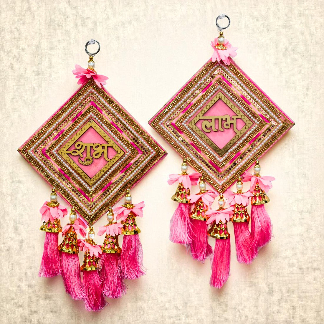 Enhance the festive vibes of your home with this Beautiful Shubh Labh Wall Hanging. Designed in vibrant pink with golden... Read more