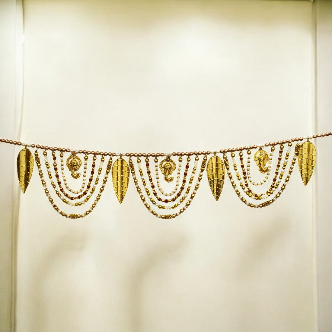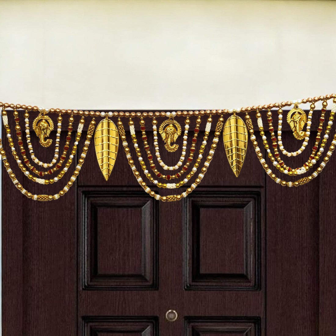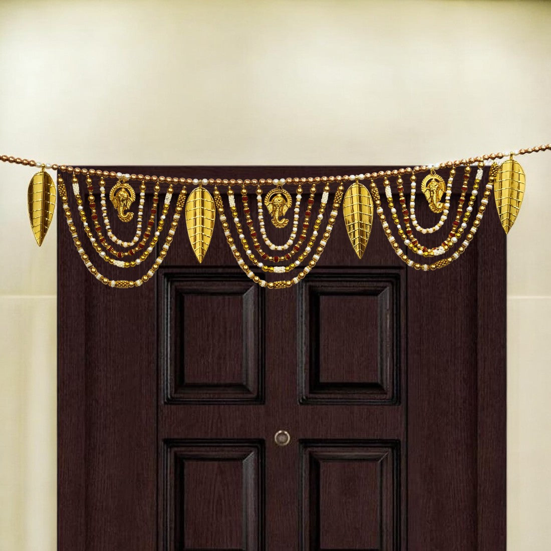Decorative Beaded Toran with Golden Leaves & Ganesh Design, Door Hanging for Diwali, Navaratri, Festivals & Home Décor
