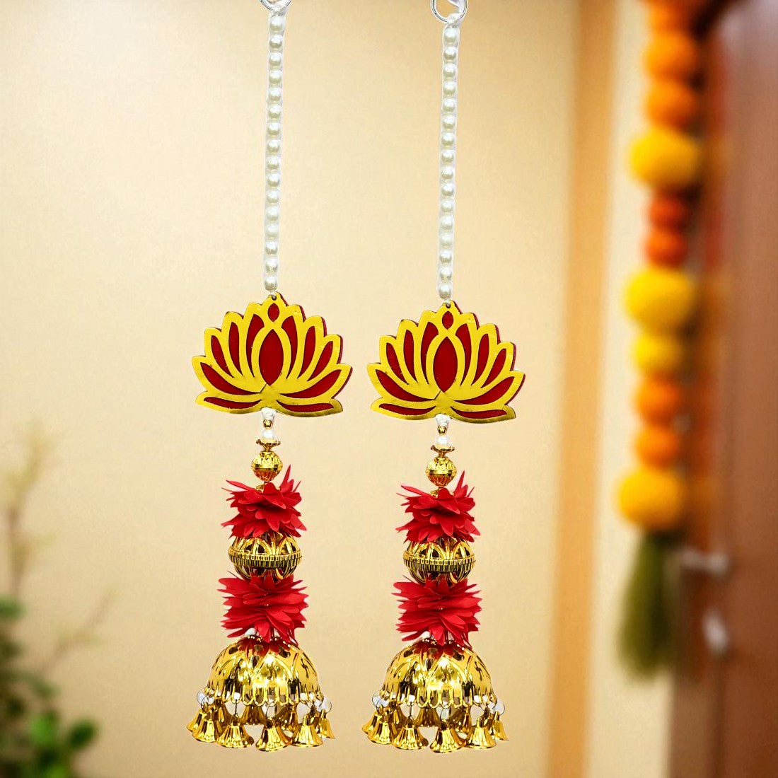 Decorative Door Hanging with Lotus & Jhumka – Diwali Festive Decor (Pack of 2) SIZE 40 CM