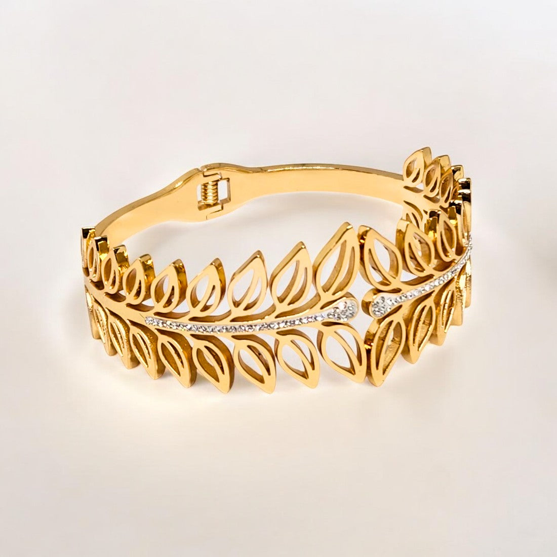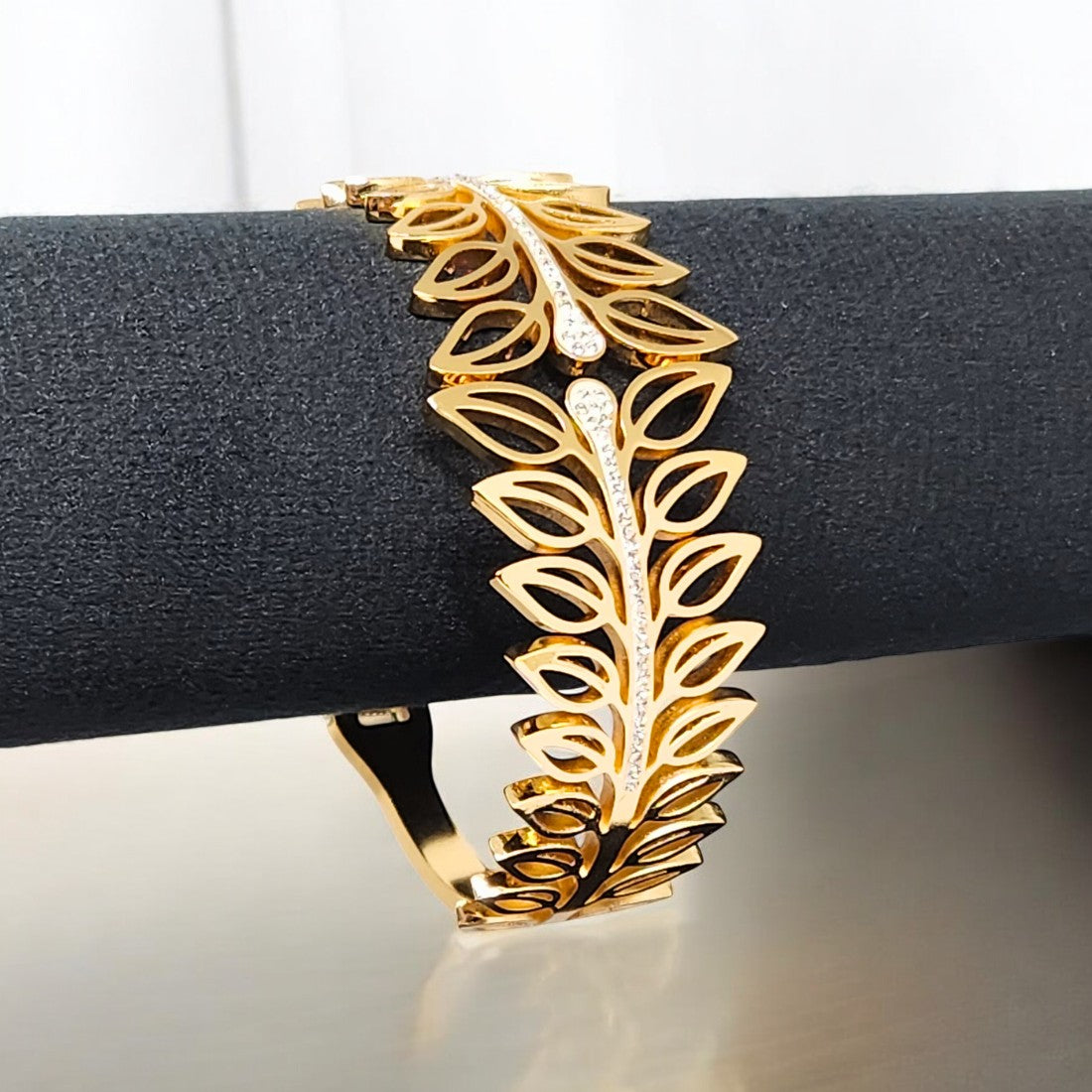 Elegant Leaf Design Gold-Plated Bracelet with Sparkling Stones for Women & Girls