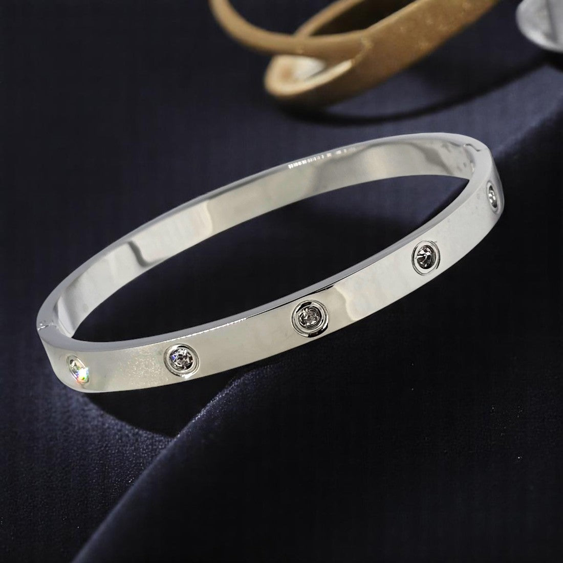 Sleek, sophisticated, and effortlessly stylish — this Silver-Tone Crystal Studded Bangle is the perfect blend of modern elegance and everyday... Read more