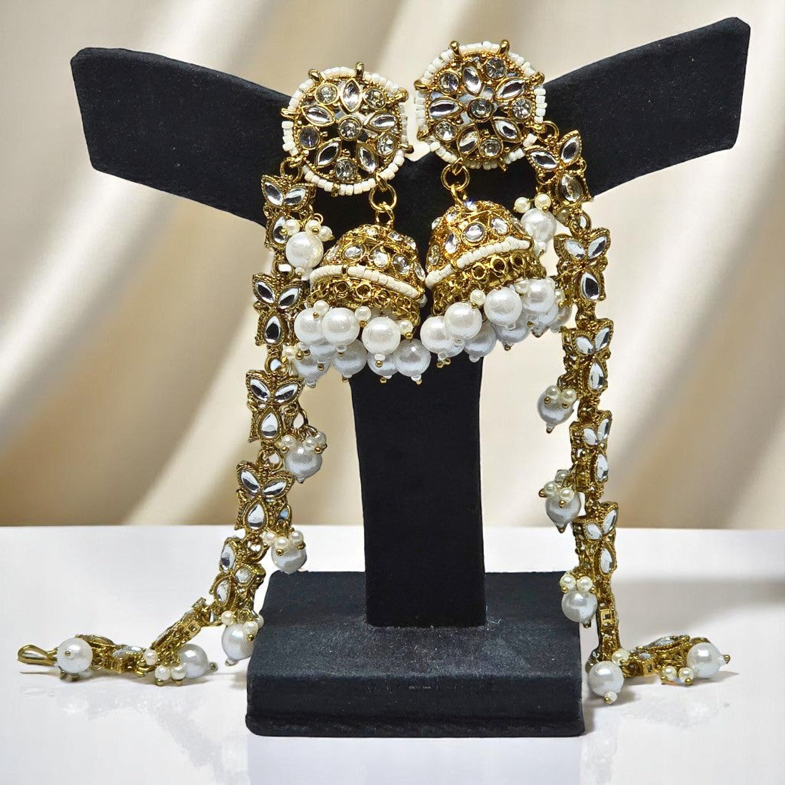 Traditional Kundan & Pearls Bahubali Chain Jhumka Earring For Women & Girls
